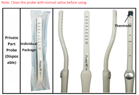 The core technology of the private care device lies in its disposable treatment probe, which is very small, user-friendly, and comfort during treatment. The disposable probe is only the size of an index finger, so there is no feeling of discomfort when inserting for treatment. The disposable probe is valid for 30 minutes. After the probe is activated, the valid time is 30 minutes, which avoids the risk of secondary use.