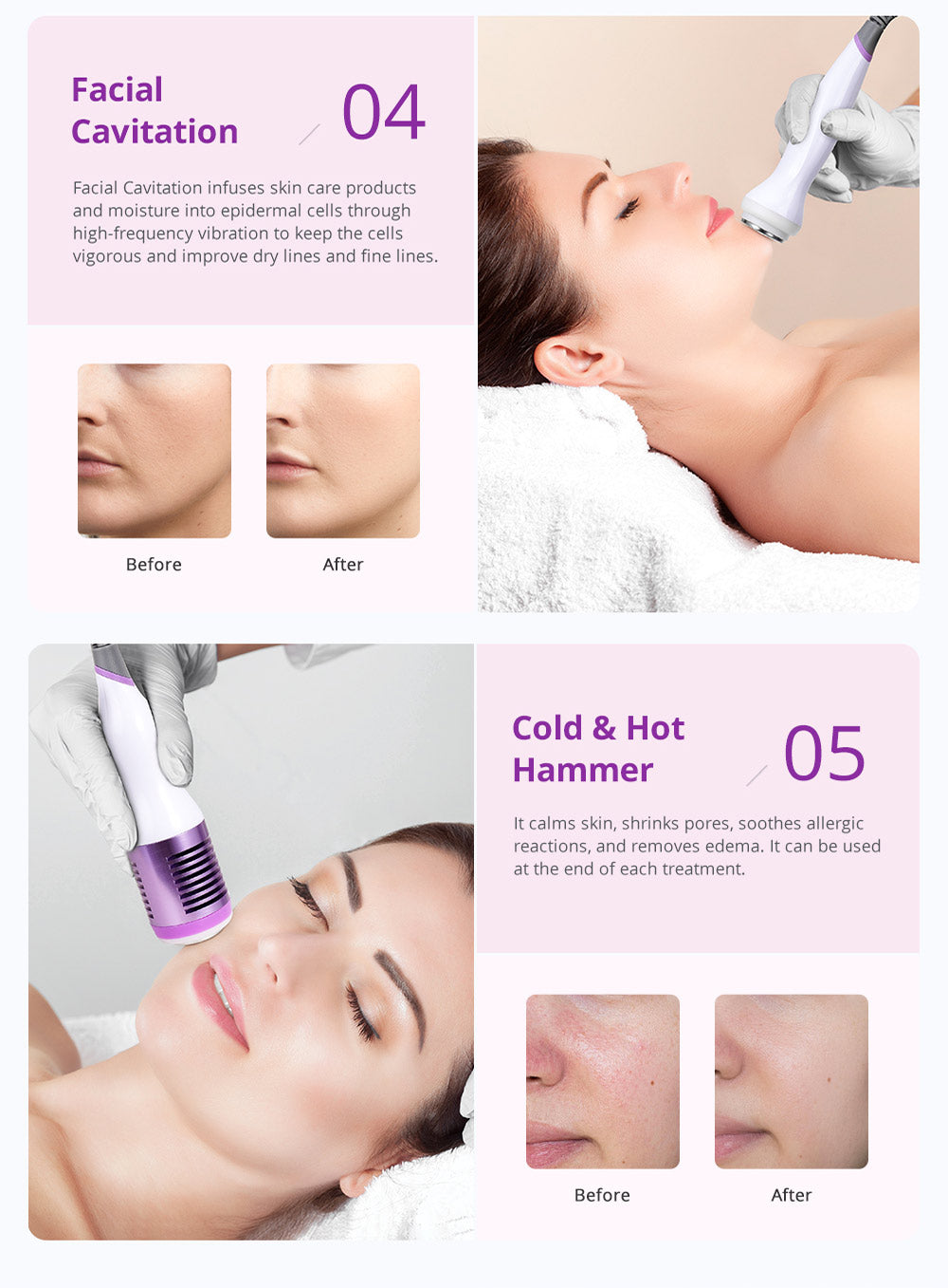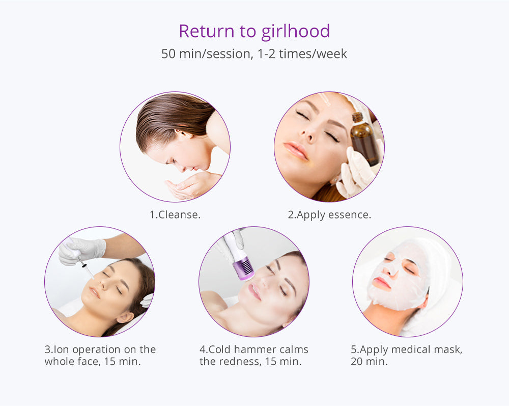 Use the hot&cold hammer to shrink pore after skin moisturizing and nutrition importation, this cooling therapy can promote sin tightening and enhance acne relieving and smoothing, to calm down the skin on the face.