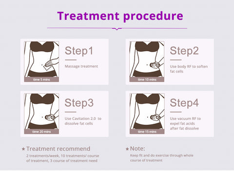 Remember to drink about 1 liter water within 1 hour before Radio Frequency Unoiestion Cavitation 2.0 treatment to help the liquid fat out of the body.